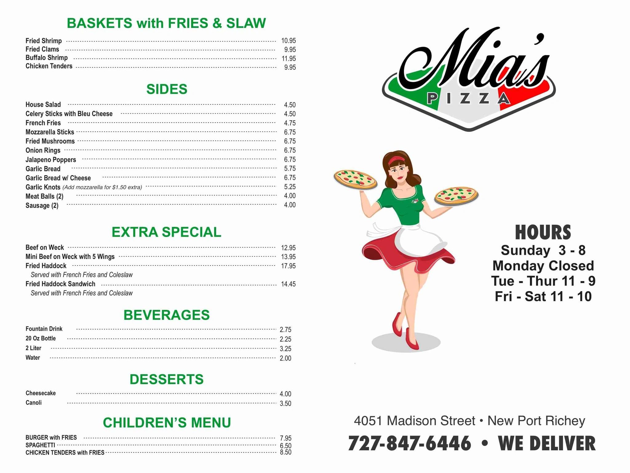 Satisfy your cravings with fresh, hot pizza from Mia's Pizza.